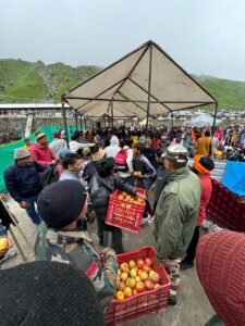 • मंदिर समिति ने तीर्थयात्रियों को फल वितरित किये,जिला -प्रशासन, गढ़वाल मंडल विकास निगम ने उपलब्ध कराया भोजन एवं पीने...