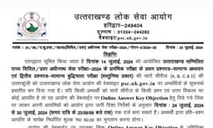 उत्तराखंड में PCS प्री परीक्षा-2024 की आनसर-की जारी…… देहरादून: उत्तराखण्ड लोक सेवा आयोग ने 14 जुलाई, 2024 को आयोजित उत्तराखण्ड...