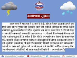 उत्तराखण्ड में मानसून ने दस्तक दे दी, उत्तरकाशी पुलिस ने श्रद्धालुओं से की अपील….. देहरादून: उत्तराखण्ड में मानसून ने दस्तक...