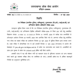 उत्तराखंड में लोकसेवा आयोग ने इस भर्ती को लेकर जारी किया बड़ा UPDATE, बिलकुल ना चुके…… देहरादून: उप निरीक्षक (नागरिक...