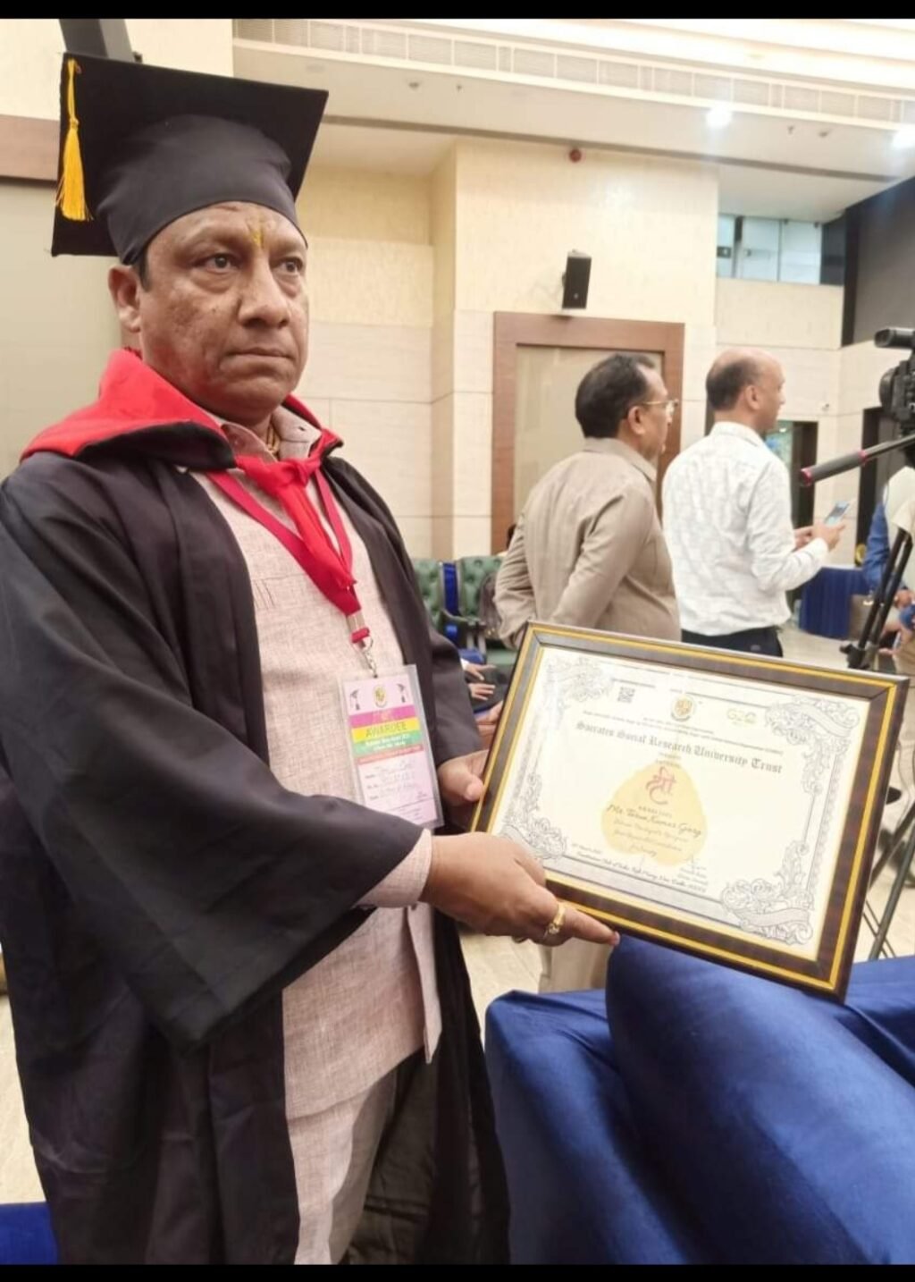 हापुड़, एसएसआर विश्वविद्यालय ने हापुड़ निवासी तरूण गर्ग को धार्मिक व सामाजिक कार्यों का उचित मूल्यांकन करते हुए उन्हें डॉक्टरेट की मानद उपाधि प्रदान की है। नई दिल्ली के कांस्टीट्यूशन क्लब में आयोजित कार्यक्रम में अतिथियों ने तरूण गर्ग को डॉक्टरेट की मानद उपाधि प्रदान की है। तरूण गर्ग गत 25 वर्ष धार्मिक, सामाजिक कार्यों को कर रहे है। श्री गोवर्धन पूजा महोत्सव सेवा समिति के द्वारा प्रत्येक वर्ष संगीतमय गोवर्धन उत्सव के साथ मासिक गोवर्धन परिक्रमा,करा रहे है जिसमे हजारो की संख्या मे श्रद्धालु बढ चढ़कर भाग लेते है इतना ही नही तरूण गर्ग अपने यू ट्यूब चैनल के माध्यम से इस संगीतमय यात्रा का सजीव प्रसारण करते जिनका देश विदेश मे लाखो भक्त अनुश्रवण करते है साथ ही तरूण गर्ग समय समय पर फागोत्सव, गंगा दशहरा कार्यक्रम आदि करते रहते है। इसके अलावा व धर्म महासंघ के भी प्रदेशाध्यक्ष है। तरूण गर्ग की इस उपलब्धि पर राष्ट्रीय दिया समाचार परिवार उन्हे इस अवसर पर हार्दिक बधाई देता है और उनकी दीर्घायु की कामना करता है।