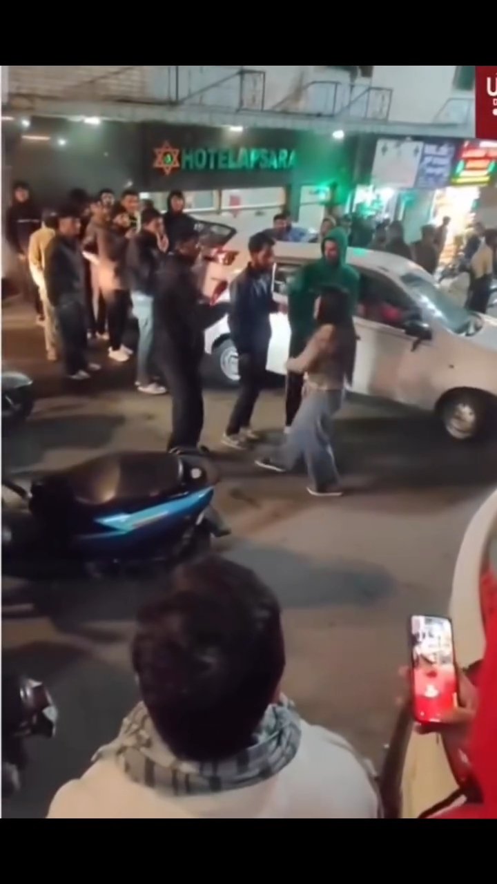 चौक पर करीब आधे घंटे तक हाईवोल्टेज ड्रामा चलता रहा। स्थानीय लोगों ने बीच-बचाव कर किसी तरह स्थिति शांत कराई। बताया जा रहा है कि विवाद एक स्पा सेंटर पर पत्थर फेंकने और उस पर हुई कहासुनी से जुड़ा हुआ था, जिसके बाद दोनों पक्ष सड़क पर भिड़ गए।