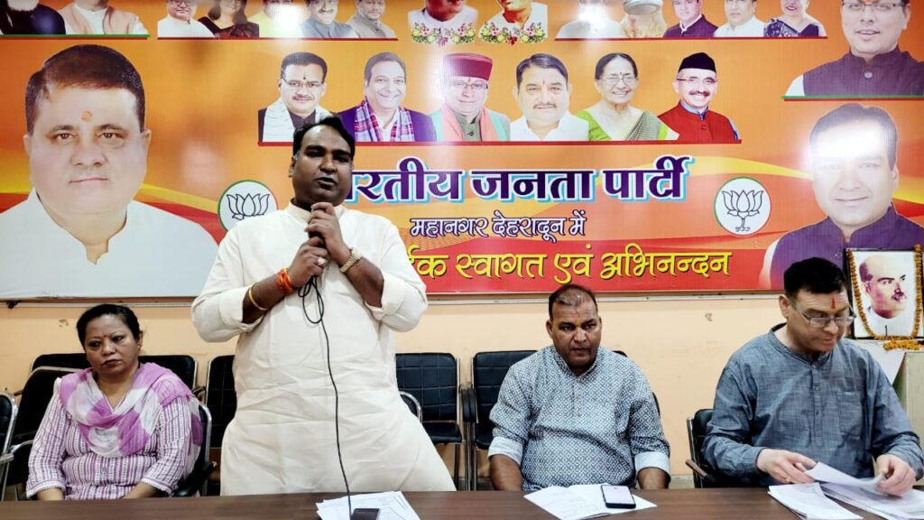देहरादून भारतीय जनता पार्टी महानगर कार्यालय पर महानगर के अध्यक्ष सिद्धार्थ उमेश अग्रवाल की अध्यक्षता में आगामी कार्यक्रमों को लेकर बैठक आयोजित की गई। बैठक में महानगर अध्यक्ष सिद्धार्थ उमेश अग्रवाल ने सभी कार्यकर्ताओं एवं देशवासियों को केंद्र में भारतीय जनता पार्टी की सरकार और देश के यशस्वी प्रधानमंत्री नरेंद्र मोदी जी को पुनः देश की कमान संभालने और प्रधानमंत्री बनने पर हार्दिक शुभकामनाएं दी एवं अजय टम्टा जी को केंद्रीय राज्य मंत्री बनने पर उत्तराखंड की ओर से केंद्रीय नेतृत्व का धन्यवाद दिया और शुभकामनाएं दी। महानगर अध्यक्ष सिद्धार्थ उमेश अग्रवाल ने बताया कि 21 जून को अंतर्राष्ट्रीय योग दिवस है और इस योग दिवस पर महानगर देहरादून की ओर से परेड ग्राउंड में बड़ा कार्यक्रम किया जा रहा है जिसमें हम सब लोगों की अहम भूमिका रहने वाली है अंतर्राष्ट्रीय योग दिवस पर जो कि पूरे विश्व में बनाया जाता है इस दिन हमारे प्रदेश के प्रदेश के यशस्वी मुख्यमंत्री पुष्कर सिंह धामी जी एवं प्रदेश अध्यक्ष आदरणीय महेंद्र भट्ट जी महामंत्री संगठन आदरणीय अजय कुमार जी उपस्थित रहेंगे।