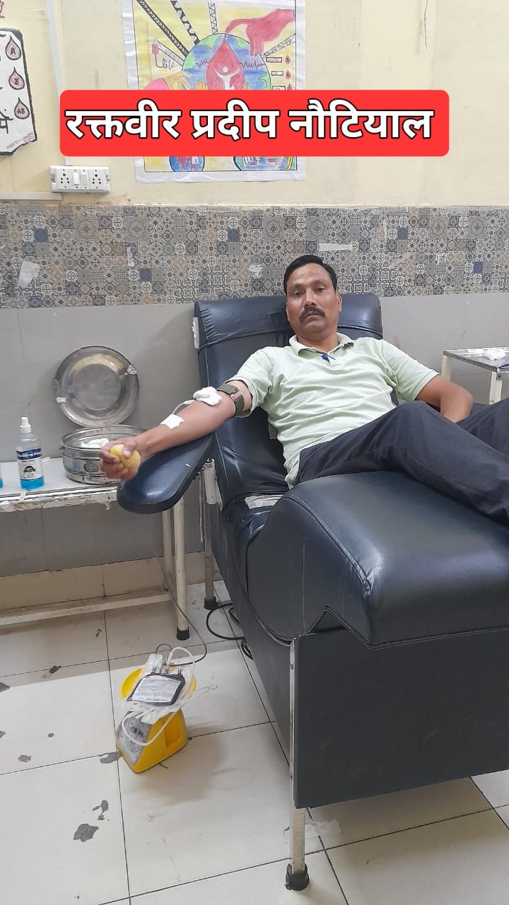 वरिष्ठ पुलिस अधीक्षक पौड़ी लोकेश्वर सिंह द्वारा जनपद के पुलिस कार्मिकों को अपनी दैनिक ड्यूटी के अलावा मानवतावादी कार्य करने हेतु भी लगातार प्रेरित किया जा रहा है। जिसके क्रम में जनपद पुलिस को सोशल मीडिया के माध्यम से सूचना प्राप्त हुयी कि विगत दिनों से बेस अस्पताल श्रीकोट, श्रीनगर में श्रीमती मंजू देवी निवासी नारायणबगड़ जनपद चमोली भर्ती है जिनका हिमोग्लोबिन कम होने के कारण चिकित्सकों द्वारा परिजनों को शीघ्र AB नेगेटिव ब्लड उपलब्ध कराये जाने हेतु कहा गया। परिजनों द्वारा AB नेगेटिव ब्लड ग्रुप व्यक्ति की काफी तलाश की गयी लेकिन यह ब्लड ग्रुप रेयर होने के कारण परिजनों को ब्लड डोनर व्यक्ति नहीं मिल पाया। उनके द्वारा सोशल मीडिया के माध्यम से भी ब्लड डोनेट करने करने हेतु मैसेज प्रेषित किया गया। इस मैसेज को देखते ही पौड़ी पुलिस के एलआईयू कार्यालय पौड़ी में नियुक्त मुख्य आरक्षी प्रदीप नौटियाल ने तुरन्त बेस अस्पताल श्रीनगर पहुंचकर बीमार मंजू देवी को 01 यूनिट AB नेगेटिव ब्लड डोनेट किया गया। जिस पर परिजनों द्वारा पौड़ी पुलिस का आभार प्रकट किया गया। तभी किसी ने कहा है