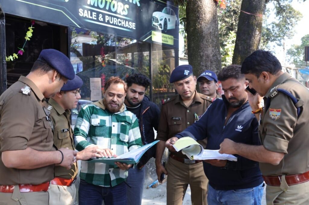 आज एसएसपी देहरादून द्वारा स्वंय नगर क्षेत्रान्तर्गत स्थित पुरानी बाइक/ कार को रेंट/विक्रय करने वाले प्रतिष्ठानों का आकस्मिक निरीक्षण किया गया, निरीक्षण के दौरान एसएसपी देहरादून द्वारा उक्त प्रतिष्ठानों में कार/बाइकों को रेंट/ विक्रय से संबंधित दस्तावेजो/रजिस्टरों को चैक करते हुए प्रतिष्ठान संचालकों को आवश्यक दिशा निर्देश दिये गये।