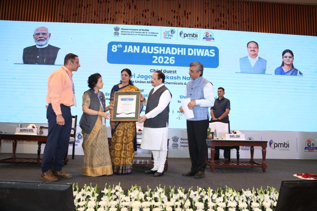 नई दिल्ली स्थित भारत मंडपम में आयोजित 8वें जन औषधि दिवस सम्मान समारोह कार्यक्रम के दौरान, विभिन्न राज्यों के सर्वश्रेष्ठ प्रदर्शन करने वाले जनऔषधि केंद्रों और स्वास्थ्य संस्थानों को इस योजना के माध्यम से किफायती स्वास्थ्य सेवा को बढ़ावा देने हेतु सम्मानित किया गया। केन्द्रीय स्वास्थ्य और परिवार कल्याण मंत्री जेपी नड्डा ने विजेताओं को यह पुरस्कार देकर उन्हें सम्मानित किया। कार्यक्रम के दौरान, केंद्रीय मंत्री जेपी नड्डा ने जनऔषधि योजना के लाभार्थियों से बातचीत की। इस दौरान लाभार्थियों ने उन्हें बताया कि कैसे सस्ती जेनेरिक दवाओं ने स्वास्थ्य देखभाल के वित्तीय बोझ को कम करने में मदद की है।