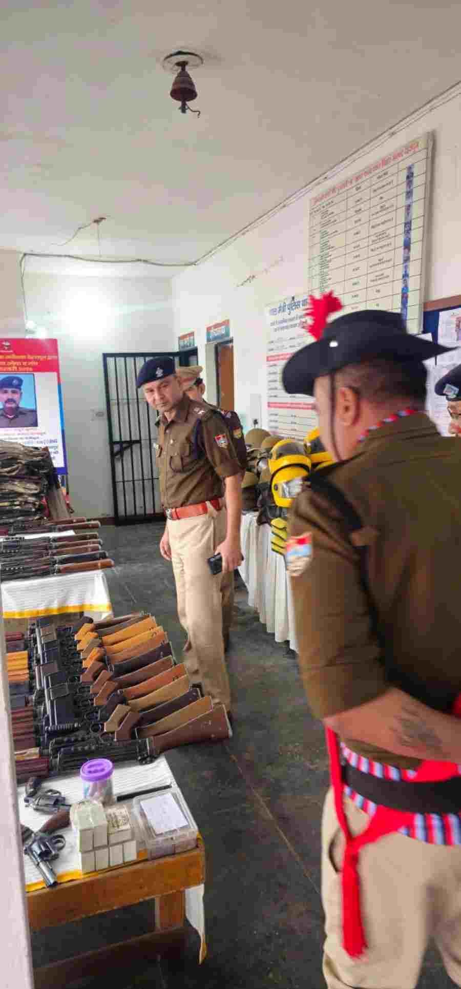 मालगृह के निरीक्षण के दौरान मालखाने में रखे मालों के रखरखाव, उनके निस्तारण एवं संपूर्ण सरकारी संपत्ति की जानकारी ली गई। थाने पर उपलब्ध सरकारी संपत्ति व असलाह तथा दंगा नियंत्रण उपकरण , आपदा उपकरण का निरीक्षण किया गया, जिसका रखरखाव संतोषजनक पाया गया। थाने पर लंबित माल मुकदमाती, लावारिस , कुर्की आदि मालों का निरीक्षण कर उनके रखरखाव के संबंध में आवश्य निर्देश दिए गए तथा एमवी एक्ट, लावारिस व अभियोगों से संबंधित मालों का शीघ्र निस्तारण व नीलामी प्रक्रिया किये जाने हेतु मालखाना मोहर्रिर को निर्देशित किया गया। इस दौरान असलाह के खोलने और जोड़ने के संबंध में सभी उप निरीक्षक एवं मौजूद कर्म०गणों से जानकारी कर उनका अभ्यास करवाया गया।