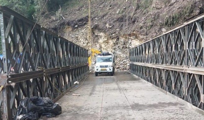 देवाल (चमोली)। चमोली जिले के देवाल विकास खंड के लोहाजंग-वाण मोटर मार्ग के छाजडी में वॉश आउड मोटर मार्ग पर लोनिवि की ओर से बैली ब्रिज बना दिया है जिस पर बुधवार से छोटे वाहनों की आवाजाही शुरू कर दी गई है। विभाग के अनुसार दो दिन बाद बड़े वाहनों के लिए ब्रिज को खोल दिया जाएगा। बैली ब्रिज बनने और वाहनों की आवाजाही शुरू होने से क्षेत्र के ग्रामीणों ने राहत की सांस ली है।