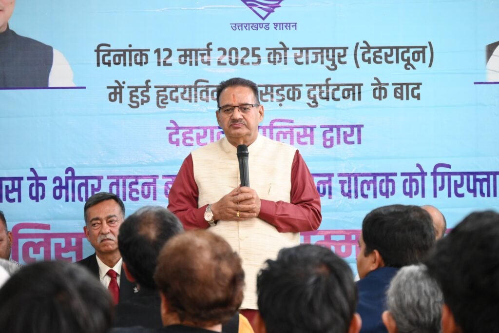 कैबिनेट मंत्री गणेश जोशी ने पुलिस टीम की तत्परता और कार्यशैली की सराहना करते हुए कहा कि कानून-व्यवस्था बनाए रखने और अपराधियों पर त्वरित कार्रवाई करने में देहरादून पुलिस ने सराहनीय कार्य किया है। उन्होंने पुलिस टीम को इसी तरह मुस्तैदी से काम करने के लिए प्रेरित किया। उन्होंने कहा कि पुलिस कार्मिकों का सम्मान समाज के लिए प्रेरणादायक होगा। मंत्री ने कहा कि सरकार अपराध और लापरवाही को कतई बर्दाश्त नहीं करेगी, और दोषियों के खिलाफ सख्त कार्रवाई की जाएगी। इस दौरान उन्होंने मृतकों के प्रति शोक संवेदना व्यक्त की। गौरतलब है कि 12 मार्च को राजपुर रोड, देहरादून में एक दर्दनाक सड़क हादसा हुआ था, जिसमें चार लोगों की मृत्यु और दो लोग गंभीर रूप से घायल हो गए थे। इस दुर्घटना के बाद थाना राजपुर, देहरादून में मु०अ०सं० 45/2025 धारा 105/125/281/324(4) बीएनएस के तहत मामला दर्ज किया गया था। देहरादून पुलिस टीम ने एक दिवस के भीतर वाहन बरामद कर लिया और वाहन चालक को गिरफ्तार कर घटना का अनावरण किया। इस त्वरित कार्रवाई के लिए जनपद पुलिस की खूब प्रशंसा हो रही है।