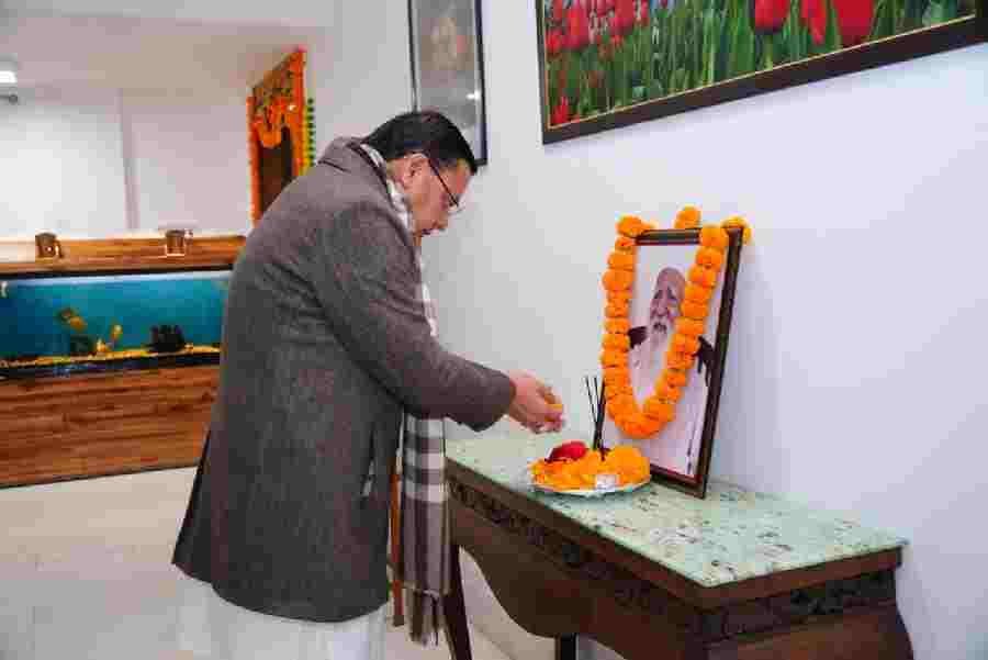 मुख्यमंत्री पुष्कर सिंह धामी ने पर्यावरणविद, चिपको आंदोलन के प्रणेता तथा पद्म विभूषण से सम्मानित सुन्दरलाल बहुगुणा की जयंती पर उनके चित्र पर श्रद्धा सुमन अर्पित किए।