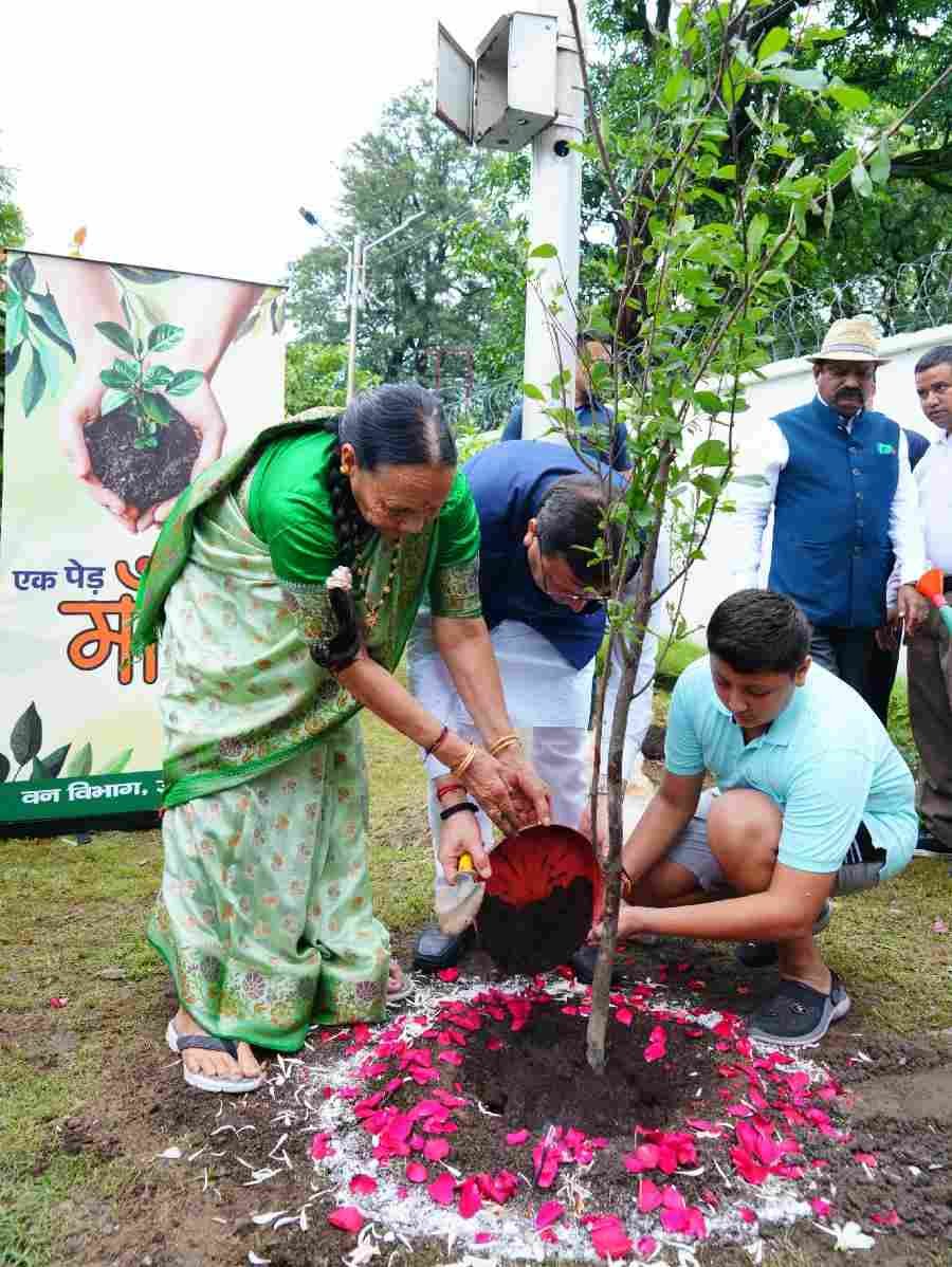 मुख्यमंत्री पुष्कर सिंह धामी ने शनिवार को एक पेड़ मां के नाम अभियान के तहत अपनी माताजी श्रीमती बिशना देवी के साथ पौधारोपण किया। मुख्यमंत्री के सुपुत्र दिवाकर ने भी इस अवसर पर पौधा लगाया। इस पहल का उद्देश्य प्रत्येक व्यक्ति को अपनी माँ के सम्मान में एक पेड़ लगाने के लिए प्रेरित करना है, ताकि भावनात्मक जुड़ाव के माध्यम से पर्यावरण संरक्षण को जन-आंदोलन बनाया जा सके।