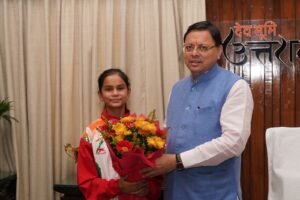 मुख्यमंत्री पुष्कर सिंह धामी से रविवार को मुख्यमंत्री कैम्प कार्यालय में युवा मुक्केबाज दीपाली थापा ने भेंट की। नैनीताल की दीपाली ने दुबई के अबू धाबी में सितम्बर में आयोजित एशियन बॉक्सिंग चैंपियनशिप जीती। उन्होंने 33 किग्रा वर्ग में स्वर्ण पदक जीता। मुख्यमंत्री ने दीपाली को उनकी इस उपलब्धि के लिए बधाई दी और उनके उज्ज्वल भविष्य की कामना की है।