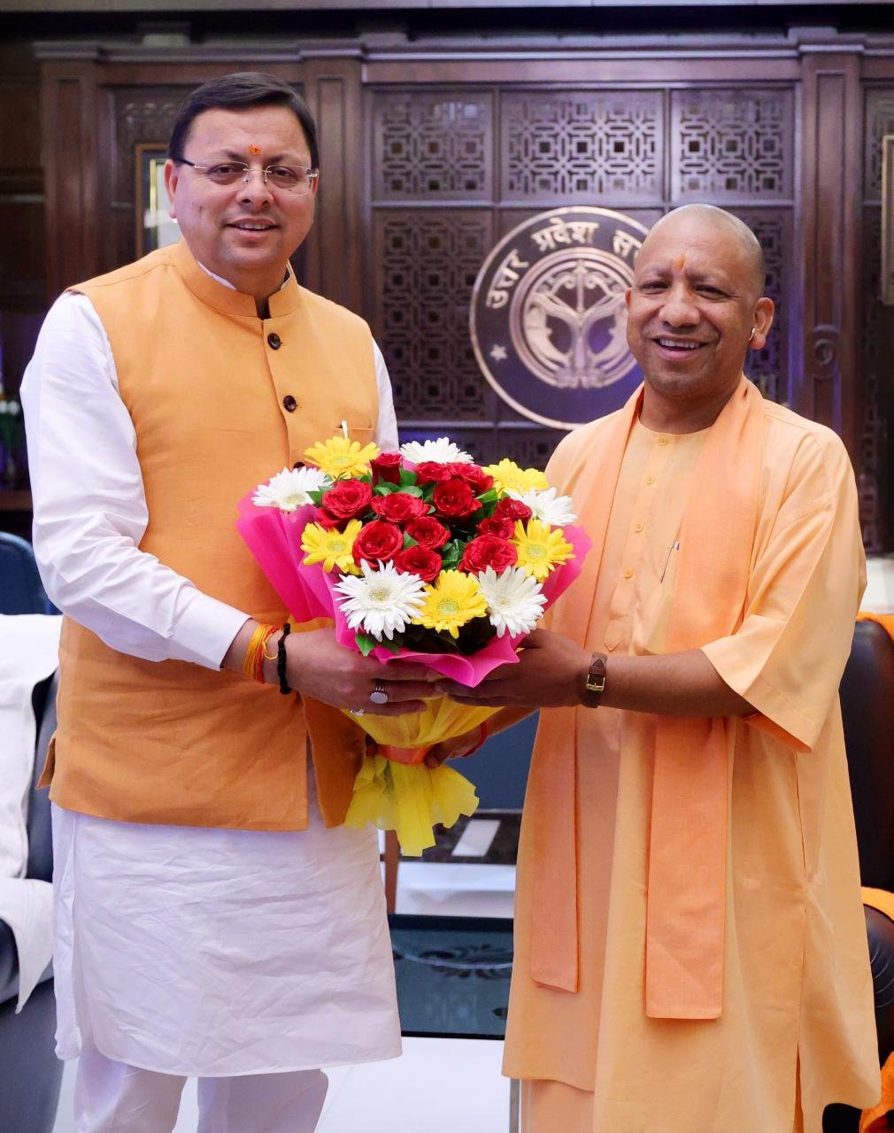 मुख्यमंत्री पुष्कर सिंह धामी ने मंगलवार को लखनऊ में उत्तर प्रदेश के मुख्यमंत्री योगी आदित्यनाथ जी से शिष्टाचार भेंट की। इस अवसर पर उन्होंने प्रभु बदरी विशाल जी की प्रतिमा और प्रदेश में उत्पादित श्रीअन्न से बने उत्पाद उपहार स्वरूप प्रदान किए। मुख्यमंत्री ने उत्तर प्रदेश के मुख्यमंत्री से उत्तराखण्ड एवं उत्तर प्रदेश के मध्य आस्तियों एवं दायित्वों के विभाजन संबंधी विभिन्न विषयों पर भी चर्चा की।