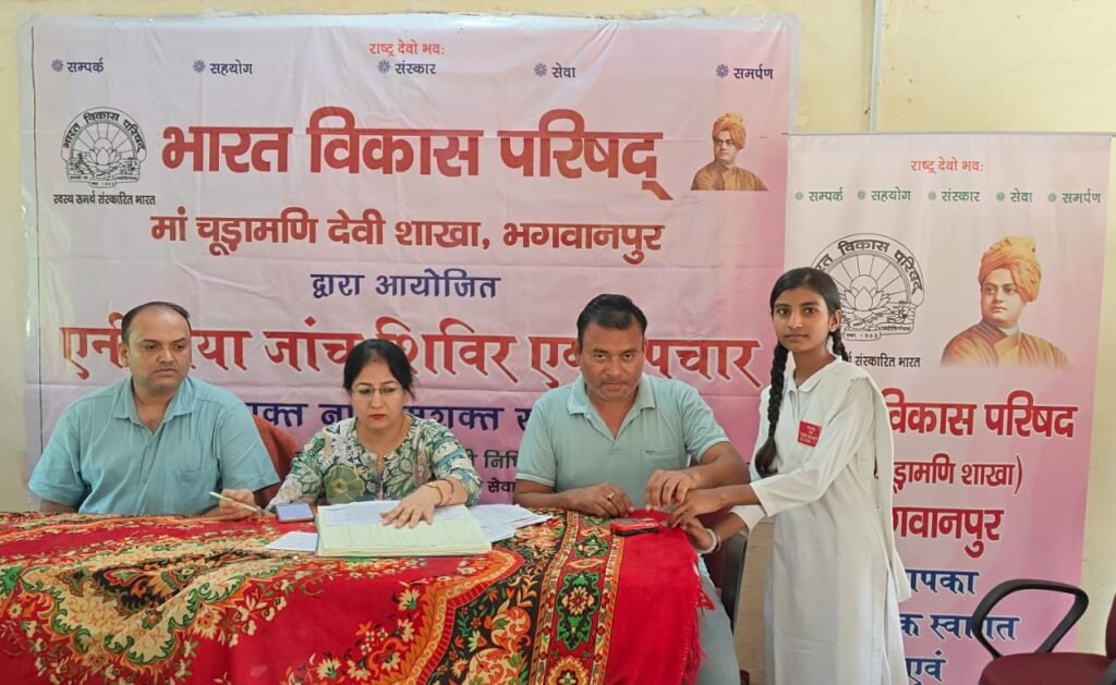 आज सी एम डी इंटर कॉलेज, चुड़ियाला में भारत विकास परिषद शाखा की भगवानपुर शाखा के सौजन्य से एनीमिया जांच,उपचार एवं स्वास्थ्य एवं शिविर का आयोजन किया गया। जिसमें स्वास्थ्य विभाग के लोगों ने भी एनीमिया से प्रभावित बच्चों को जागरूक किया। साथ ही इन बच्चों को पोषाहार भी वितरण किया गया।