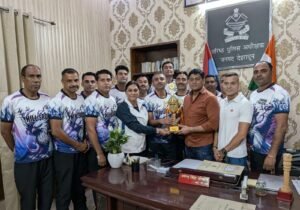 विजेता टीम द्वारा दिनांक: 15-04-24 को वरिष्ठ पुलिस अधीक्षक देहरादून से शिष्टाचार भेंट की गई। वरिष्ठ पुलिस अधीक्षक देहरादून द्वारा पूरी टीम के स्वर्णिम प्रर्दशन पर उन्हें बधाई देते हुए उनके उज्जवल भविष्य का कामना की, साथ ही टीम के सभी सदस्यों को कडी मेहनत कर भविष्य में भी इसी प्रकार के स्वर्णिम प्रदर्शन करने हेतु प्रोत्साहित किया गया।
