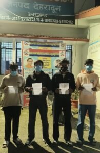 एसएसपी देहरादून अजय सिंह ने वायरल वीडियो का संज्ञान लेते हुए थाना क्लेमनटाउन को कार्रवाई के सख्त निर्देश दिये तो पुलिस ने चार युवाओं को हिरासत मे लेकर क़ानूनी कार्यवाही की पकडे गये दो युवक निजी शिक्षण संस्थान के छात्र है जिनके विरुद्ध कार्यवाही हेतु कॉलेज प्रबंधन को भी रिपोर्ट भेजी गई है प्राप्त जानकारी के अनुसार सोशल मीडिया पर वायरल एक वीडियो, जिसमें कुछ युवक क्लेमेंटटाउन क्षेत्र में सार्वजनिक स्थान पर लड़ाई झगड़ा करते हुए दिखाई दे रहे थे, उक्त वायरल वीडियो का संज्ञान लेते हुए एसएसपी देहरादून द्वारा तत्काल उक्त युवकों की तलाश कर उनके विरुद्ध आवश्यक वैधानिक कार्यवाही के निर्देश दिए गए, जिस पर थानाध्यक्ष क्लेमटाउन के नेतृत्व में टीम गठित कर त्वरित कार्रवाई करते हुए वीडियो में दिख रहे युवकों के संबंध में जानकारी एकत्र करते हुए 04 युवकों (1)-यश्वसी गौतम पुत्र श्री विनय कुमार गौतम, निवासी 150/2 कोतवाली चौराह हाथरस जिला अलीगड़ उत्तर प्रदेश (2)-वंश तोमर पुत्र वरुण तोमर निवासी तिशोतरा, जिला बिजनोर उतर प्रदेश (3)-ध्रुव शर्मा पुत्र रवि शंकर शर्मा, निवासी 1043 इन्द्रानगर कालोनी , बसंत बिहार देहरादून (4)- कृष्णा राठी पुत्र कर्मवीर राठी निवासी कृष्णा मार्केट, क्लेमेंट टाउन देहरादून को हिरासत में लिया गया, जिनके विरुद्ध आवश्यक वैधानिक कार्यवाही की गई।