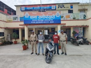 देहरादून की रानी पोखरी पुलिस ने चोरी की घटना का खुलासा करते हुए घटना को अंजाम देने वाले 2 शातिर अभियुक्त को गिरफ्तार किया है पुलिस को आरोपियों के कब्ज़े से चोरी का एक्टिवा और दूकान से चोरी किया सामान बरामद हुआ है प्राप्त जानकारी के अनुसार अनिल पुत्र स्व. ज्ञानचन्द, निवासी ग्राम घमण्डपुर, रानीपोखरी, ने अज्ञात चोरों द्वारा द्वारा उनके टीन के खोखे का ताला तोड़कर उसमें रखे 02 पैकेट मास्टर बीड़ी, 02 पैकेट मजदूर 444 बीड़ी, 02 डिब्बी सिगरेट कैपिस्टन, 02 डिब्बी सिगरेट गोल्ड फ्लैक, 02 डिब्बी सिगरेट एडवांस, 02 पैकेट फ्लेम माचिस, नगदी तथा स्कूटी संख्या UK07FV-2182 (एक्टिवा) चोरी करने के संबंध में दी गई तहरीर के आधार पर थाना रानीपोखरी पर मु0अ0सं0-89/2025, धारा 303(2)/305(A)/331(4) भारतीय न्याय संहिता (BNS) बनाम अज्ञात पंजीकृत किया गया था।
