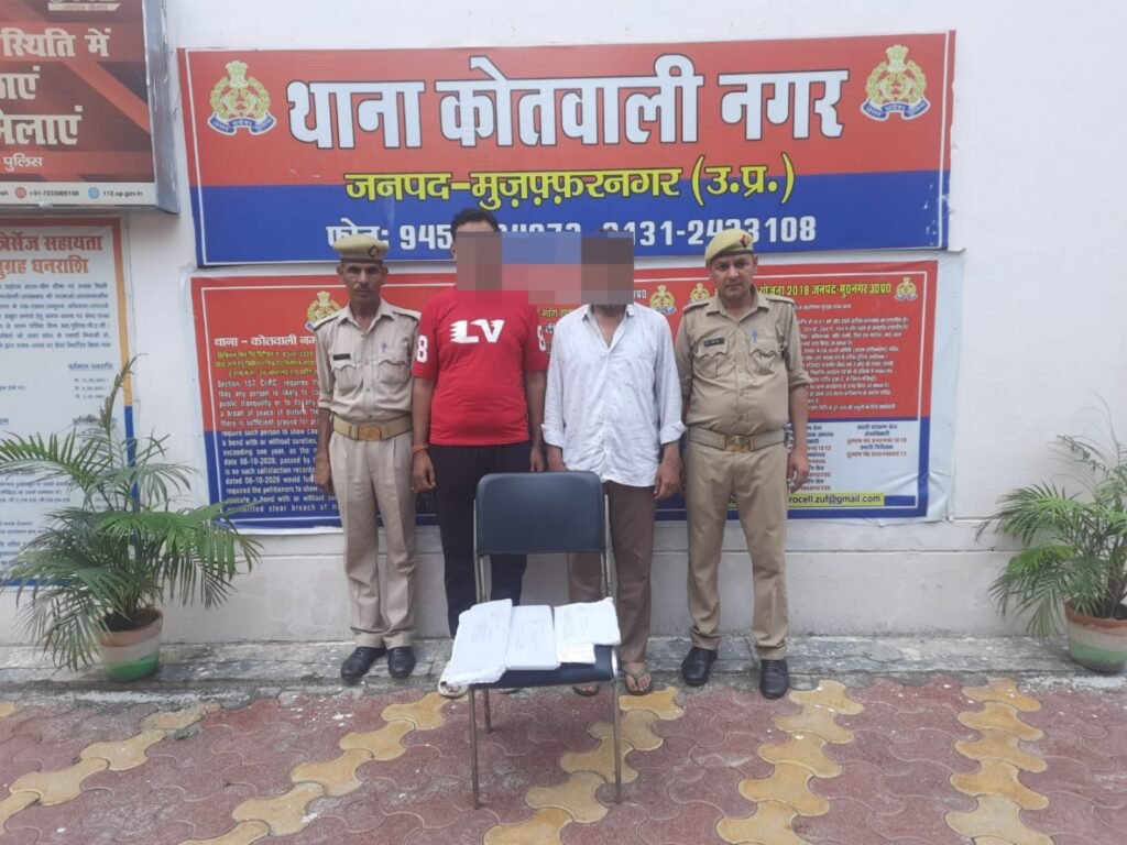 मुजफ्फरनगर पुलिस से मिली जानकारी के अनुसार जनपद मुजफ्फरनगर में शातिर अभियुक्तगण की गिरफ्तारी हेतु वरिष्ठ पुलिस अधीक्षक अभिषेक सिंह के निर्देशन में चलाये जा रहे अभियान के अन्तर्गत पुलिस अधीक्षक नगर सत्यनारायण प्रजापत के निकट पर्यवेक्षण में, सहायक पुलिस अधीक्षक/क्षेत्राधिकारी नगर व्योम बिंदल तथा थानाध्यक्ष अक्षय शर्मा थाना कोतवाली नगर के कुशल नेतृत्व में दिनांक 28.06.2024 को थाना कोतवाली नगर पुलिस द्वारा मुखबिर की सूचना पर वाहनों का इन्जन व चेसिस नंबर परिवर्तित कर धोखाधड़ी से वाहन बेचने वाले 02 शातिर अभियुक्तगण को खामपुर रोड पर काली नदी पुल के पास से गिरफ्तार किया गया। गिरफ्तार अभियुक्तगण के कब्जे से 01 आयशर कैन्टर, 01 टाटा टियागो कार तथा अन्य प्रपत्र बरामद किये गये । अभियुक्तगण की गिरफ्तारी व बरामदगी के सम्बन्ध में थाना कोतवाली नगर पुलिस द्वारा सुसंगत धाराओं में अभियोग पंजीकृत कर अग्रिम विधिक कार्यवाही की जा रही है।