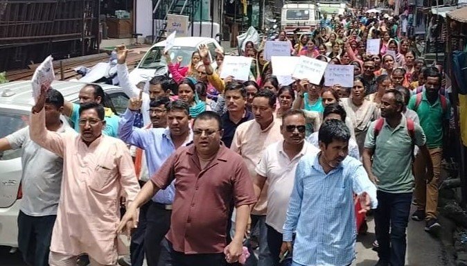अपने पूर्व निर्धारित कार्यक्रम के तहत शिक्षक अभिभाव संघ की ओर से प्रवक्ताओं के रिक्त पदों को भरे जाने की मांग को लेकर प्रदर्शन किया गया। संघ के अध्यक्ष गोविंद राम सोनी कोषाध्यक्ष हरेंद्र बिष्ट का कहना है कि एक लंबे समय से विद्यालय में शिक्षको का टोटा चल रहा है। कई बार विभागीय आलाधिकारियों के साथ पत्राचार किया जा चुका है लेकिन उनकी बात पर गौर नहीं किया जा रहा है। उन्होंने कहा कि शिक्षकों के अभाव में छात्रों के पठन पाठन में व्यवधान उत्पन्न हो रहा है। उन्होंने कहा कि विद्यालय में बीते छह साल से अंग्रेजी, तीन साल से अर्थशास़्त्र और एक वर्ष से भूगोल के प्रवक्ता का पद रिक्त चल रहा है ऐसे में अंदाजा लगाया जा सकता है कि विद्यालय के पढने वाले छात्रों को भविष्य कितना सुनहरा है। पिछले लम्बे समय से अभिभावक रिक्त पदो को भरने और भवन निर्माण की मांग के लिए संघर्षरत है। लेकिन सरकार और प्रशासन उनकी मांग पर ध्यान नहीं दे रहे हैं। स्कूल में पढ़ने वाले चार सौ से अधिक छात्रों का भविष्य चौपट होते जा रहा है। उन्होंने चेतावनी देते हुए कहा कि यदि 28 जुलाई तक प्रवक्ताओं को नियुक्ति नहीं हुई तो 29 जुलाई से उग्र आंदोलन किया जाएगा। इस मौके पर प्रदर्शनकारियों में संघ के अध्यक्ष गोबिंद सोनी, कोषाध्यक्ष हरेंद्र बिष्ट, प्रधान मनोज कुमार, यूडी जोशी, शीतल सिंह, विरेन्द्र सिंह, कलम पटाकी, खिलाप राम, मेहरवान सिंह, रमेश गडिया, उमेद बोरा, नंदन आर्य, बलवीर सिंह, गीता,नन्दी देवी, तारा, कमला, रमोती, राधा, सरस्वती, पूजा देवी आदि मौजूद थे।