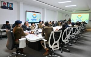 आज दीपम सेठ, पुलिस महानिदेशक, उत्तराखण्ड* की अध्यक्षता में *38वें राष्ट्रीय खेलों के आयोजन की तैयारियों* के दृष्टिगत गढ़वाल व कुमाऊँ परिक्षेत्र सहित समस्त जनपद प्रभारियों, सेनानायकों एवं सम्बन्धित ईवेन्ट मैनेजमेन्ट एजेन्सियों के साथ त्रुटिरहित सुरक्षा व्यवस्था, फोर्स व्यस्थापन प्लान, यातायात प्लान, पार्किंग, सुरक्षा व्यवस्था हेतु आवश्यक उपकरण के सम्बन्ध में वीडियो कान्फ्रेसिंग के माध्यम से एक उच्च स्तरीय समीक्षा गोष्ठी आयोजित की गयी।