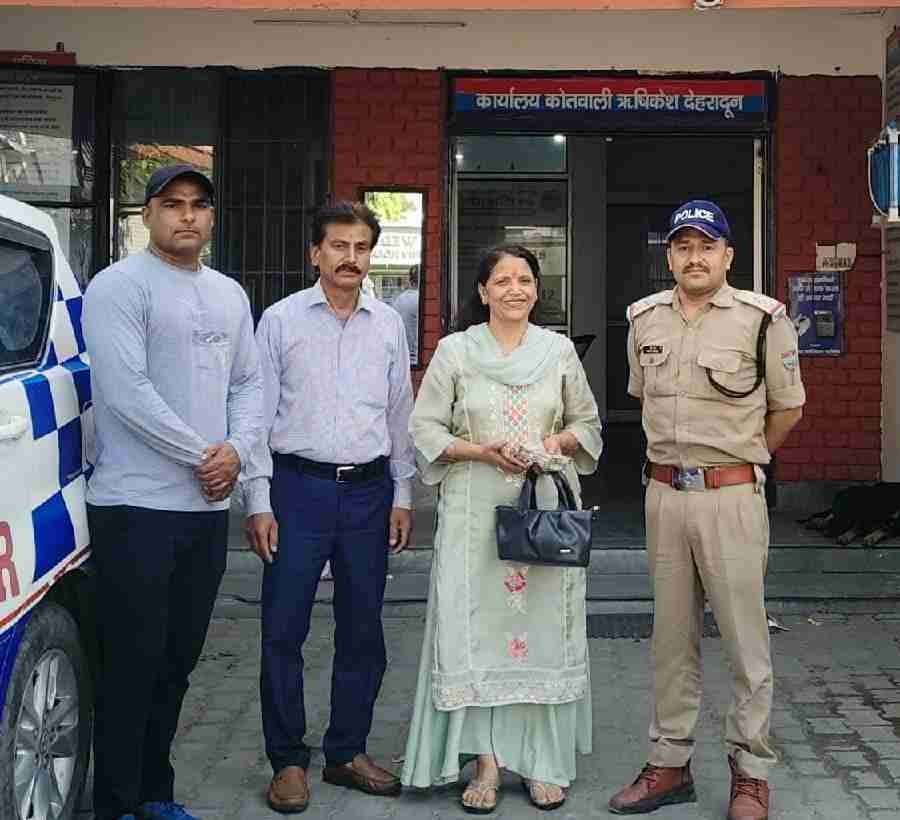 दिनांक 02-06-2025 को श्रीमती सरिता भट्ट पत्नी जगतराम भट्ट् निवासी चोपडा फार्म, श्यामपुर, थाना ऋषिकेश, जनपद देहरादून ने कोतवाली मे आकर एक लिखित प्रार्थना पत्र दिया गया कि उनका पर्स बाजार मे कही गिर गया है, जिसमे उनका एप्पल कंपनी का फोन व एक लाख रूपये नगद थे, उनके द्वारा अपना पर्स ढूढने का काफी प्रयास किया गया, पर वो उन्हें नहीं मिल पाया, उक्त सूचना पर प्रभारी निरीक्षक कोतवाली ऋषिकेश द्वारा पुलिस कर्मियों को पीडिता की सहायता हेतु तत्काल उनके साथ भेजा गया।