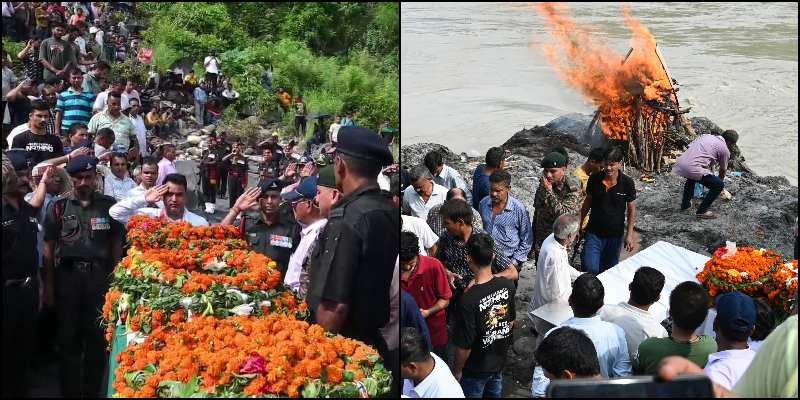देहरादून: जम्मू-कश्मीर के कठुआ में हुए आतंकी हमले में बलिदान हुए पांचों वीर जवानों का उनके पैतृक घाटों पर पूरे सैन्य सम्मान के साथ अंतिम संस्कार कर दिया गया। अपने बच्चों को तिरंगे में लिपटा देख बलिदानियों का परिवार नि:शब्द था, वहीं अंतिम यात्रा में पहुंचे हर शख्स की आंखों में आंसू थे। कहीं बहन ने अपने भाई के पार्थिव शरीर को कंधा दिया तो कहीं मासूम बच्चों ने अपने पिता को मुखग्नि दी।