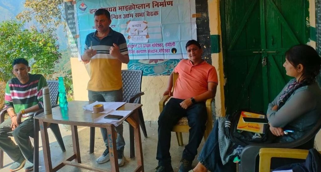 गोपेश्वर (चमोली)। अलकनंदा भूमि संरक्षण वन प्रभाग और नव ज्योति महिला कल्याण संस्थान की ओर से शनिवार को चमोली जिले के दशोली विकास खंड के कम्यार गांव में ग्रामीणों के साथ बैठक कर वन पंचायतों को सशक्त बनाने के लिये बनाये जा रहे माइक्रोप्लान की जानकारी ग्रामीणों को दी गई ताकि प्राथमिकता के आधार पर विभागीय कार्यों को किया जा सके।