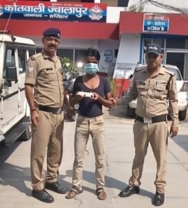 हरिद्वार की ज्वालापुर पुलिस ने एक संदिग्ध व्यक्ति को अवैध चाकू के साथ गिरफ्तार किया है पकड़ा गया आरोपी तेज़ धार वाला चाकू लेकर किसी घटना को अंजाम देने की नियत से घूम रहा था लेकिन पुलिस की सक्रियता के चलतेbकांस्टेबल अनिल चौहान और कांस्टेबल खजान सिंह ने आरोपी को शक के आधार पर चेकिंग के दौरान तलाशी मे चाकू मिलने के बाद गिरफ्तार कर लिया पकडे गये आरोपी का नाम रिजवान पुत्र इकराम, निवासी मोहल्ला कोटरावान, कोतवाली ज्वालापुर, हरिद्वार जिसके पास से अवैध चाकू बरामद होने के बाद गिरफ्तार कर जेल भेज दिया है