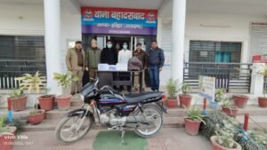 हरिद्वार की थाना बहादराबाद पुलिस ने शराब ठेके के सेलमैन को लूटने वाले दो शातिर बदमाशों को गिरफ्तार कर लिया है पुलिस ने पकडे गये बदमाशों के कब्ज़े से लुटे हुईं रकम के साथ साथ अवैध हथियार और चोरी की बाइक बरामद की है आपको याद दिला दे की दिनांक 30.12.2025 को जगजीतपुर स्थित देशी शराब के ठेके से पैसे लेकर ऑटो के जरीए रुड़की के लिए निकले सेल्समैन कृष्णा राणा को पतंजली रिसर्च सेंटर के पास रुकवाकर 02 अज्ञात व्यक्तियों ने उसका बैग छीन फरार हो गए। पीड़ित व्यक्ति (सेल्समैन) से गहनता से पूछताछ करने पर यह तथ्य प्रकाश में आया कि अज्ञात आरोपित द्वारा उक्त घटना कारित करते वक्त तमंचे का इस्तेमाल किया गया था जिस कारण पीड़ित घबरा गया था। उक्त आधार पर मुकदमें में धारा 309(4) बीएनएस की बढ़ोत्तरी की गई।