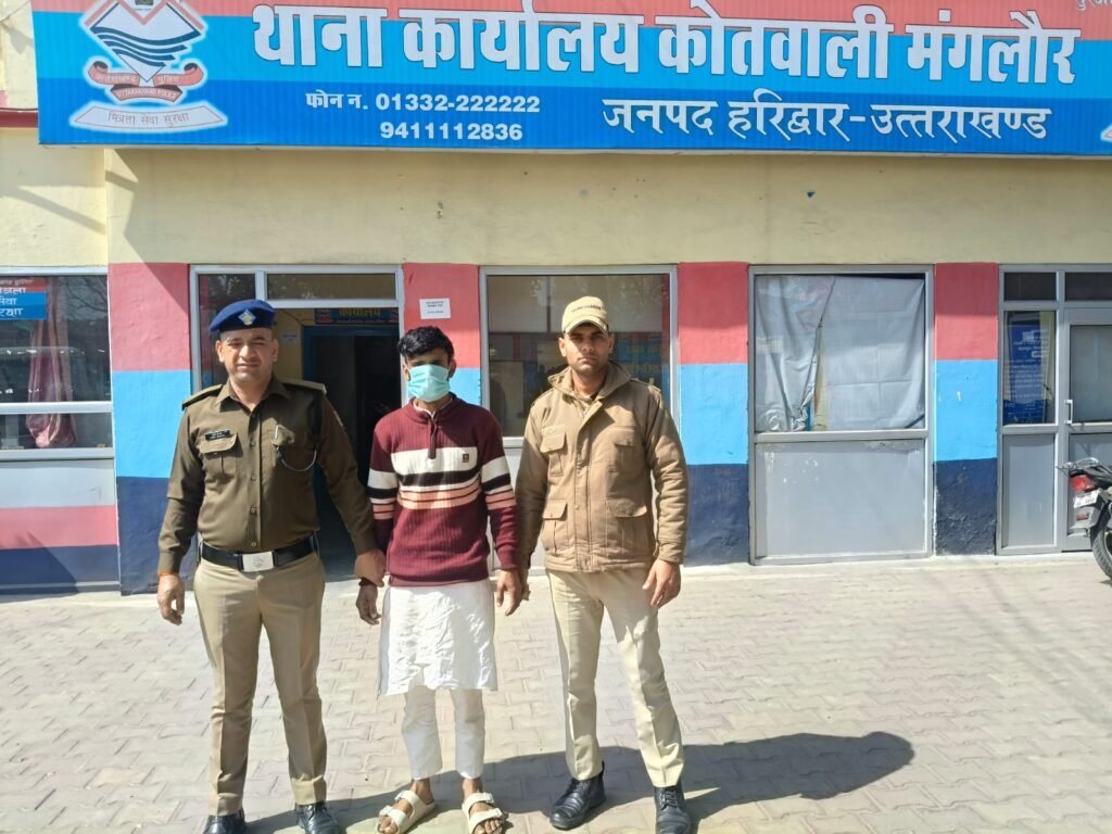 हरिद्वार की कोतवाली मंगलौर पुलिस ने सीआईयू रुड़की के सहयोग से ₹5000 के ईनामी बदमाश को गिरफ्तार कर लिया है पकड़ा गया आरोपी गौकशी के प्रकरणो मे फरार चल रहा था पकडे गये आरोपी के खिलाफ कोतवाली-मंगलौर मे दिनांक 10-01-26 को अन्तगर्त धारा 3/5/11 उ0 गोवंश अधिनियम पंजीकृत था जिसमे सम्बन्धित आरोपी की तलाश हेतु दबिशे दी गई थी परन्तु लगातार फरार चल रहा था व अपने ठिकाने बदल रहा था। जिस कारण आरोपी की गिरफ्तारी के सम्बन्ध में एसएसपी हरिद्वार द्वारा ₹5000/- की ईनाम की घोषणा की गई थी। आरोपी की गिरफ्तारी हेतु एस0एस0पी0हरिद्वार के निर्देशन में पुलिस प्रभारी निरीक्षक द्वारा टीम का गठन किया गया तथा सीआईयू रुड़की के साथ मिलकर मुखबिर मामूर कर आरोपी की तलाश की जिसके फलस्वरुप निम्नलिखित आरोपी को धर दबोचा।