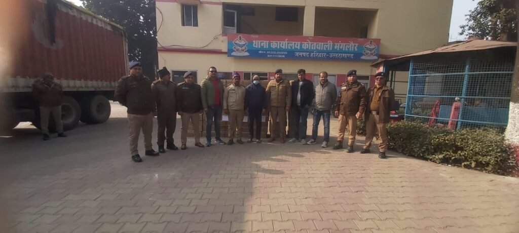 हरिद्वार की कोतवाली मंगलौर पुलिस ने कप्तान डोबाल की अगुवाई में एक और बड़ी सफलता प्राप्त कर ली है पुलिस ने शराब तस्करी पर बड़ी सर्जिकल स्ट्राइक करते हुए 10 टायरा ट्रक के साथ ट्रक चालक को , 300 पेटी अंग्रेजी शराब के साथ गिरफ्तार कर लिया है आरोपी इस शराब की खेप को चंडीगढ़ से बिहार लेकर जा रहा था प्राप्त जानकारी के अनुसार दिनांक 14-1 -2026 को चौकी लण्ढौरा क्षेत्र में चैकिंग के दौरान संयुक्त टीम ने विशेष इनपुट के आधार पर एक 10 टायरा ट्रक को रोककर ड्राइवर से मालुमात की तो ड्राइवर ने जानकारी दी की ट्रक के जरीए कैमिकल ले जाया जा रहा है। ट्रक ड्राइवर द्वारा की जा रही तमाम आनाकानी व बहानेबाजी के बाद भी जब पुलिस टीम ने ट्रक कंटेनर को चैक किया तो ट्रक के अंदर 300 पेटी शराब (हरियाणा ब्रांड सुपर जुबली स्पेशल व्हिस्की) बरामद हुई।