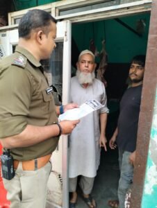 हरिद्वार की कोतवाली रूडकी पुलिस ने मीट की दुकानों पर छापेमारी करते हुए आवंटित लाइसेंस की शर्तों का पालन न करने वाले 8मीट विक्रेताओं के खिलाफ कार्यवाही करते हुए का चालान काट दिया आपको बता दे की आज कोतवाली रुड़की पुलिस ने रुड़की क्षेत्रान्तर्गत चौकी सोत बी में ईमली रोड पर स्थित मीट बिक्रेताओ की दुकानो को चैक किया गया जिसमे 08 दुकानदारो के द्वारा लाईसेन्स मे दी गयी शर्तो का पालन नही किया जा रहा था। अनियमितता पाए जाने पर उक्त का 81 पुलिस अधिनियम मे चालान किया गया व हिदायत दी गयी कि साफ सफाई का विशेष ध्यान देगें अन्यथा लाइसेन्स निरस्तीकरण की कार्यवाही को अमल मे लाया जायेगा ।