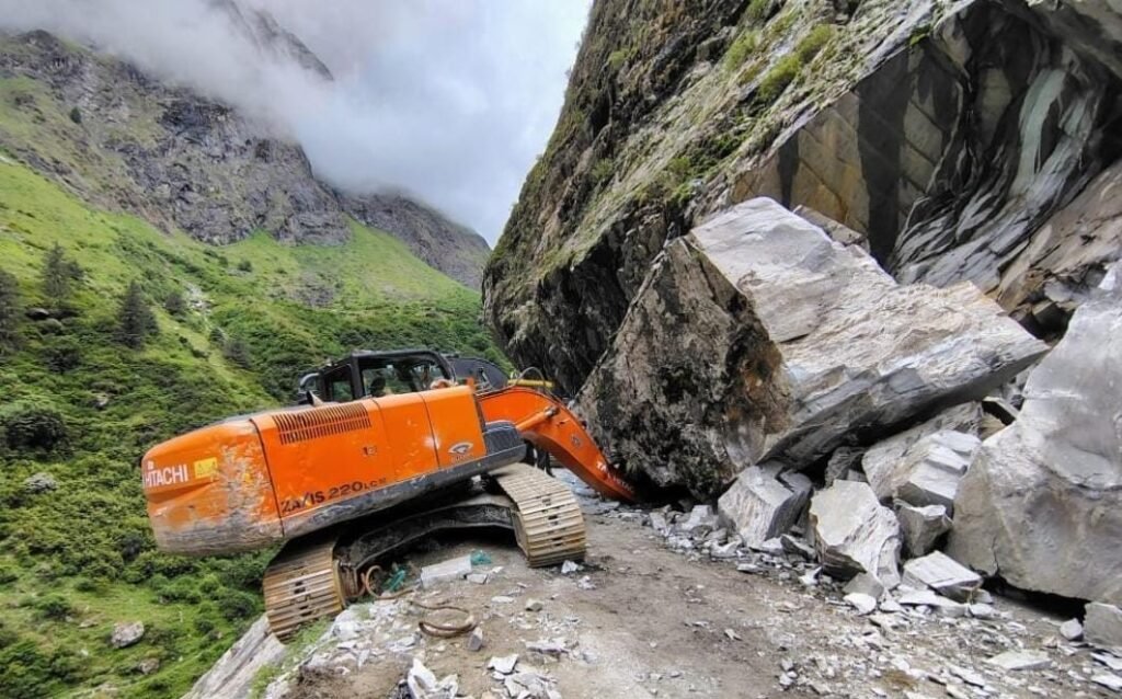 गोपेश्वर (चमोली)। बदरीनाथ राष्ट्रीय राजमार्ग पर हनुमान चट्टी के पास घुडसिल मेंएक एक्सावेटर मशीन के ऊपर पहाड़ी से भारी बोल्डर गिरने से मार्ग अवरुद्ध हो गया। जिससे हाइवे के दोनों ओर यात्रियों के वाहन फंस गये है। जोशीमठ तहसील प्रशासन की ओर से यहां दोनों ओर फंसे तीर्थयात्रियों को पानी, बिस्कुट, नमकीन, शीतल पेय और जरूरी राहत सामग्री बांटने के साथ मार्ग को सुचारू किया जा रहा है। यहां पर बोल्डर से दबी एक्सावेटर मशीन को निकालने और सड़क से बोल्डर हटाने का काम जारी है। जल्द ही मार्ग को यातायात के लिए सुचारू कर लिया जाएगा।