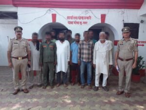 जनपद मुजफ्फरनगर में अवैध रुप से मछली/वन्य जीवों को पकडने वाले अभियुक्तगण की गिरफ्तारी हेतु वरिष्ठ पुलिस अधीक्षक अभिषेक सिंह के निर्देशन में चलाये जा रहे अभियान के अन्तर्गत पुलिस अधीक्षक ग्रामीण आदित्य बंसल के निकट पर्यवेक्षण तथा क्षेत्राधिकारी भोपा देववृत बाजपेई व थाना प्रभारी भोपा विनोद कुमार सिंह के कुशल नेतृत्व में आज दिनांक 26.05.2024 को थाना भोपा पुलिस द्वारा अवैध रुप से मछली पकडने वाले गिरोह का पर्दाफाश करते हुए 10 अभियुक्तगण को बाण गंगा नदी पुल से आगे कच्चे रास्ते के पास से गिरफ्तार किया गया। अभियुक्तगण के कब्जे से 80 किलोग्राम जिन्दा मछली, मछली पकडने का जाल व 01 स्कार्पियों गाडी बरामद की गयी। अभियुक्तगण की गिरफ्तारी व बरामदगी के सम्बन्ध में थाना भोपा पुलिस द्वारा अग्रिम विधिक कार्यवाही की जा रही है।