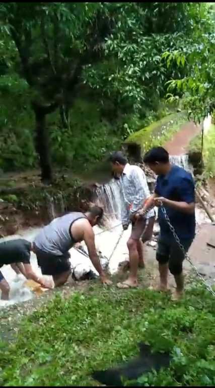 जिससे पानी के तेज बहाव से एक ट्रक और स्कूटी बहने से बाल बाल बच गयी । स्थानीय लोगो ने स्कूटी और ट्रक को बामुश्किल बचाया । आप तस्वीरों में देख सकते हैं किस तरीके से इस बरसाती नाले को पार करने की लोग कोशिश कर रहे हैं।
