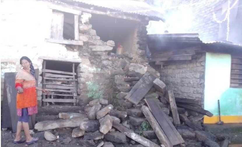धारचूला के मेतली के खेतीखान तोक में बीते गुरुवार की रात हुई तेज बारिश के दौरान स्थानीय निवासी धरम सिंह के मकान की दीवार ढह गई। घटना के वक्त परिवार घर में ही सो रहा था। हालांकि पत्थर गिरने की आज सुनकर परिवार के लोग जाग गए और बाहर की ओर दौड़ पड़े, जिससे बड़ा हादसा टल गया। ग्रामीणों ने पीड़ित परिवार को उचित मुआवजा दिए जाने की मांग की है।