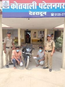 *”ड्रग्स फ्री देवभूमि 2025″* की परिकल्पना को साकार करते हुए नशा तस्करों के विरुद्ध प्रभावी कार्यवाही करने हेतु वरिष्ठ पुलिस अधीक्षक देहरादून द्वारा सभी थाना प्रभारियों को निर्देशित किया गया है, जिसके अनुपालन में जनपद में नशा तस्करो के विरुद्ध व्यापक स्तर पर अभियान चलाया जा रहा है। इसी क्रम में कोतवाली पटेलनगर पुलिस द्वारा दिनांक 22-05-2024 को चेकिंग के दौरान हरिद्वार बाईपास रोड, संस्कृति लोक कालोनी के गेट के पास से 02 अभियुक्तों 1- मौ0 नाहिद पुत्र इश्तियाक 2-शाहिद अहमद पुत्र इश्तियाक को अवैध मादक पदार्थ के साथ गिरफ्तार किया गया। गिरफ्तार अभियुक्तों के कब्जे से कुल 36.74 ग्राम स्मैक व घटना मे प्रयुक्त वाहन सं0- UK07DS- 6335 (पल्सर मोटरसाइकिल) बरामद की गई। अभियुक्त गणो के विरुद्व थाना पटेलनगर पर मु0अ0सं0-347/2024 धारा 8/21/60 NDPS Act के तहत अभियोग पंजीकृत किया गया।