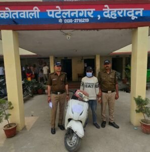 वाहन चोरी की घटना के अनावरण हेतु एसएसपी देहरादून द्वारा दिये गौए निर्देशों पर कोतवाली पटेलनगर पर पुलिस टीम का गठन किया गया, गठित टीम द्वारा घटना स्थल व आसपास आने जाने वाले मार्गों पर लगे सीसीटीवी कैमरो की फूटजो को चैक करते हुए घटना में शामिल संदिग्धों के संबंध में जानकारियां एकत्रित की गई तथा प्राप्त जानकारी के आधार पर कार्यवाही करते हुये घटना में शामिल अभियुक्त वसीम अली पुत्र फरमान अली को दिनाँक 10-03-2026 को आर्मी ग्राउण्ड पटेलनगर से गिरफ्तार किया गया, जिसके कब्जे से घटना में चोरी की गई स्कूटी UK07AJ9904 रंग सफेद बरामद की गयी।