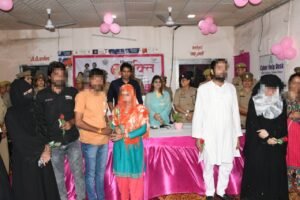 वरिष्ठ पुलिस अधीक्षक मुजफ्फरनगर संजय कुमार वर्मा उनकी धर्मपत्नी डॉ0 नीलम राय व पुलिस अधीक्षक अपराध/नोडल अधिकारी मिशन शक्ति श्रीमती इन्दु सिद्धार्थ द्वारा रिजर्व महिला थाना पर आयोजित कार्यक्रम में उपस्थित 21 दंपत्तियों को अग्रिम जीवन की शुभकामनाएं दी गयी साथ ही महिला थाना की समस्त पुलिस टीम को इस सराहनीय कार्य के लिये सम्मानित भी किया गया।