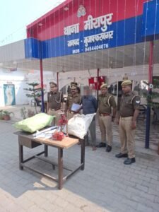 जनपद मुजफ्फरनगर में अवैध शस्त्रों की बरामदगी हेतु वरिष्ठ पुलिस अधीक्षक अभिषेक सिंह के निर्देशन में चलाये जा रहे अभियान के अन्तर्गत, पुलिस अधीक्षक ग्रामीण आदित्य बंसल के निकट पर्यवेक्षण व क्षेत्राधिकारी जानसठ यतेन्द्र सिंह नागर एवं थाना प्रभारी मीरापुर बबलू सिंह के नेतृत्व में दिनांक 02.11.2024 को थाना मीरापुर पुलिस द्वारा भुम्मा नहर पुल के दाहिनी तरफ मवाना की ओर जाने वाले कच्चे रास्ते पर ईंख के खेत में चल रही अवैध शस्त्र फैक्ट्री को जब्त करते हुए 01 अभियुक्त को गिरफ्तार किया गया। इस दौरान 02 अदद तंमचे 12 बोर ,02 अदद तंमचे 315 बोर , 02 अदद मसकट 12 बोर, 01 जिंदा कारतूस 12 बोर व 01 जिंदा कारतूस 315 बोर व अवैध शस्त्र बनाने के उपकरण बरामद किये गये। थाना मीरापुर पुलिस द्वारा मु0अ0स0 173/24 धारा 3/5/25 आर्मस एक्ट करते हुए अग्रिम विधिक कार्यवाही की जा रही है।