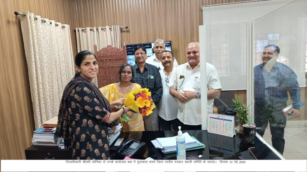 जिला स्तरीय पत्रकार स्थायी समिति के सदस्यों ने आज जिलाधिकारी श्रीमती सोनिका से उनके कार्यालय कक्ष में मुलाकात करते हुए जिलाधिकारी को पुष्पगुच्छ देकर उनका अभिवादन किया।