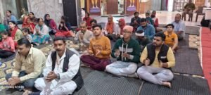 कार्यक्रम के अंत में नवरात्रि गाए गए सभी को पंच मेवे का प्रसाद भी वितरित किया गया