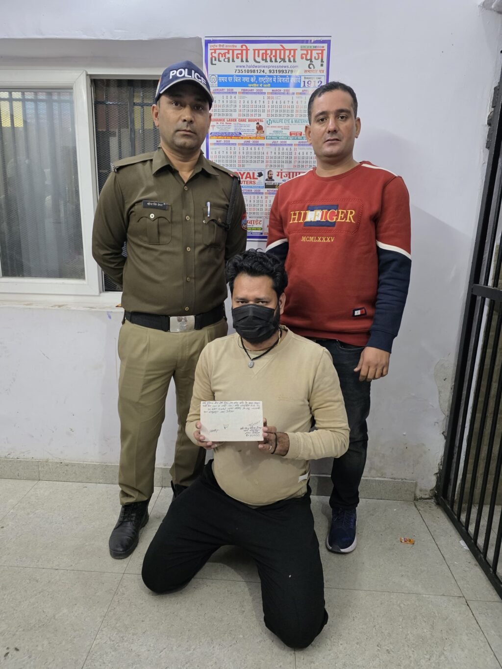 दिनांक- 23.02.2025 को दौराने चैकिंग व गश्त *1- खालिद उर्फ राजू* पुत्र मो० ताहिर निवासी ला० न० 17 गफूर हलवाई के पास थाना बनभूलपुरा उम्र 28 वर्ष को *सट्टे की खाई बाडी करने* घटना स्थल ला० न० 18 में अबरार के घर के बगल वाली गली मे थाना बनभूलपुरा को *सट्टा पर्ची पैन गत्ता व नकदी 1180 रुपये के साथ गिरफ्तार* किया गया जिसके विरुद्व थाना हाजा मे सम्बन्धित मुकदमा अपराध संख्या 46/25 धारा 13 जी एक्ट दर्ज किया गया।