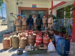 *“ऑपरेशन प्रहार” का असर: एसएसपी नैनीताल डॉ0 मंजुनाथ टीसी के निर्देश पर रामनगर पुलिस ने एल पी जी गैस की कालाबाजारी करने वाले गैंग पर प्रहार कड़ा प्रहार किया है पुलिस ने आरोपी के कब्ज़े से 34 छोटे- बड़े सिलेंडर,और गैस रिफिलिंग उपकरण सहित अवैध ज्वलनशील पदार्थ के साथ 02 शातिर भाई की जोड़ी को गिरफ्तार कर हवालत की हवा खिला दीं है प्राप्त जानकारी के अनुसार एसपी हल्द्वानी मनोज कत्याल, क्षेत्राधिकारी रामनगर सुमित पांडेय के पर्यवेक्षण में प्रभारी निरीक्षक सुशील कुमार के नेतृत्व में पुलिस द्वारा खराड़ी क्षेत्र स्थित सूचना पर एक मकान में छापेमारी की गई, जहां *घरेलू गैस सिलेंडरों की कालाबाजारी करते हुए अवैध भंडारण एवं रिफिलिंग* का कार्य किया जा रहा था का भंडाफोड़ किया गया।