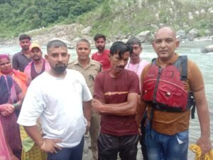 नैनीताल के काठगोदाम रानीबाग में गणपति विसर्जन* के दौरान एक व्यक्ति *वेद प्रकाश पुत्र बसंत लाल* निवासी नई बस्ती कब्रिस्तान थाना बनभूलपुरा उम्र 45 वर्ष गणपति मूर्ति विसर्जन के दौरान गौला नदी में बह गया था। मौके पर ड्यूटी में तैनात *हे0का0 जल पुलिस नैनीताल प्रताप गड़िया* द्वारा *त्वरित रेस्क्यू कर सकुशल नदी से बाहर निकाला गया।* उक्त युवक के परिजनों तथा साथियों द्वारा *नैनीताल पुलिस का आभार* व्यक्त किया गया।