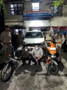 गठित टीम द्वारा घटना के अनावरण हेतु लगातार किये जा रहे सार्थक प्रयासों से आज दिनांक 29/08/2024 को मुखबिर के माध्यम से पुलिस टीम को सूचना प्राप्त हुयी कि कुछ संदिग्ध व्यक्ति बद्री कॉलोनी के जंगल में बैठे हुए हैं, जिनके द्वारा सम्भवः उक्त चोरी की घटनाओं को अंजाम दिया गया है, जिस पर पुलिस टीम द्वारा त्वरित कार्यवाही करते हुए उक्त संदिग्ध व्यक्ति की तलाश की गयी तथा बद्री कॉलोनी के जंगल से 02 संधिक्त व्यक्तियों 1- पिकू उर्फ प्रदीप कोंडा पुत्र कश्मीरी लाल 2- जसपाल कुमार उर्फ बाबी पुत्र हंसराज कुमार को हिरासत में लेते हुए उनसे सख्ती से पूछताछ की गई तो उनके द्वारा नेहरुकोलोनी क्षेत्र में वाहन चोरी तथा चैन लूट की घटना को अंजाम दिया जाना स्वीकार किया गया। अभियुक्तों की तलाशी में उनके पास से घटना में लूटी गई चैन तथा उनकी निशानदेही पर नेहरू कॉलोनी क्षेत्र से चोरी की गई मोटरसाइकिल, स्कूटी तथा घटना में प्रयुक्त कार को बरामद किया गया। दोनो अभियुक्तों को मौके से गिरफ्तार किया गया।