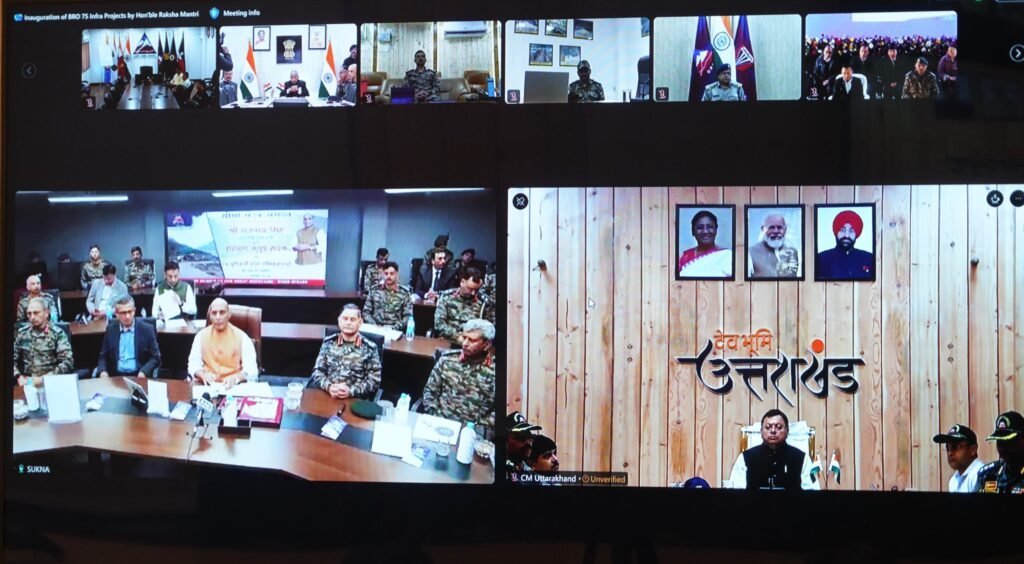 रक्षा मंत्री राजनाथ सिंह ने शनिवार को सीमा सड़क संगठन द्वारा निर्मित 75 प्रमुख बुनियादी ढांचा परियोजनाओं का लोकार्पण कर राष्ट्र को समर्पित किया। इसमें 09 परियोजनाएं उत्तराखंड की शामिल हैं। कार्यक्रम में मुख्यमंत्री पुष्कर सिंह धामी वर्चुअल रूप से उपस्थित थे।
