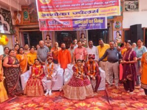 मनोज कुमार गुप्ता जी ने 1100 की एफडी बिच्छूए उपहार आदि प्रत्येक जोड़ो को विदाई के अवसर पर भेट की