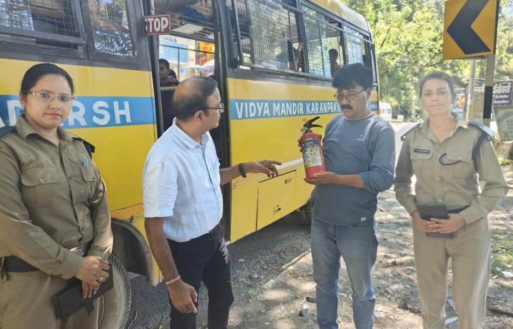 गोपेश्वर (चमोली)। स्कूली बच्चों की सुरक्षा के दृष्टिगत जिलाधिकारी चमोली संदीप तिवारी के निर्देशों पर परिवहन विभाग की ओर से गुरूवार को कर्णप्रयाग-गौचर क्षेत्र में संचालित स्कूल वाहनों की सघन चैकिंग की गई। निरीक्षक के दौरान वाहनों में स्थापित कैमरा, पैनिक बटन, अग्निशमन उपकरण, फर्स्ट एड बॉक्स, लेडी अटेंडेट, खिड़कियों पर जाल आदि सुरक्षा मानकों की जांच की गई। सुरक्षा मानकों को पूरा न करने पर पांच स्कूली वाहनों का चालान किया गया।