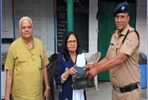 कोटद्वार। पर्यटक सीजन में देश-विदेश से भारी संख्या में पर्यटक लैंसडाउन घूमने आ रहे है। पर्यटकों की सुरक्षा के साथ ही सुचारु यातायात व्यवस्था हेतु लैंसडाउन पुलिस द्वारा दिन-रात पैट्रोलिंग के अलावा गश्त व चैकिंग की जा रही है। लैंसडाउन बाजार में अपर उपनिरीक्षक प्रवेश कुमार व होम गार्ड विकास कुमार को गश्त के दौरान एक लेडीज पर्स लावारिस अवस्था में बाजार में पड़ा हुआ मिला। पर्स में 1 सैमसंग का मोबाईल फोन, साढ़े चार हजार रुपए नगद, लेडीज सामान व आईडी आदि महत्वपूर्ण कागजात थे। दोनों कार्मिकों द्वारा आसपास पर्यटकों से जानकारी करने के बाद पर्स स्वामी से सम्पर्क किया गया तो उन्होंने बताया गया कि वह एक बुजुर्ग दम्पत्ति हैं और मेरठ से लैंसडाउन घूमने आए थे।फोटोग्राफी के दौरान पर्स रखकर भूल गए। पुलिस कर्मियों द्वारा उक्त पर्स को बुजुर्ग दम्पत्ति के सुपुर्द किया गया। बुजुर्ग दम्पत्ति श्रीमती सुधा गोश्वामी ने पौड़ी की ईमानदारी की प्रशंसा करते हुए उनका आभार व्यक्त किया।